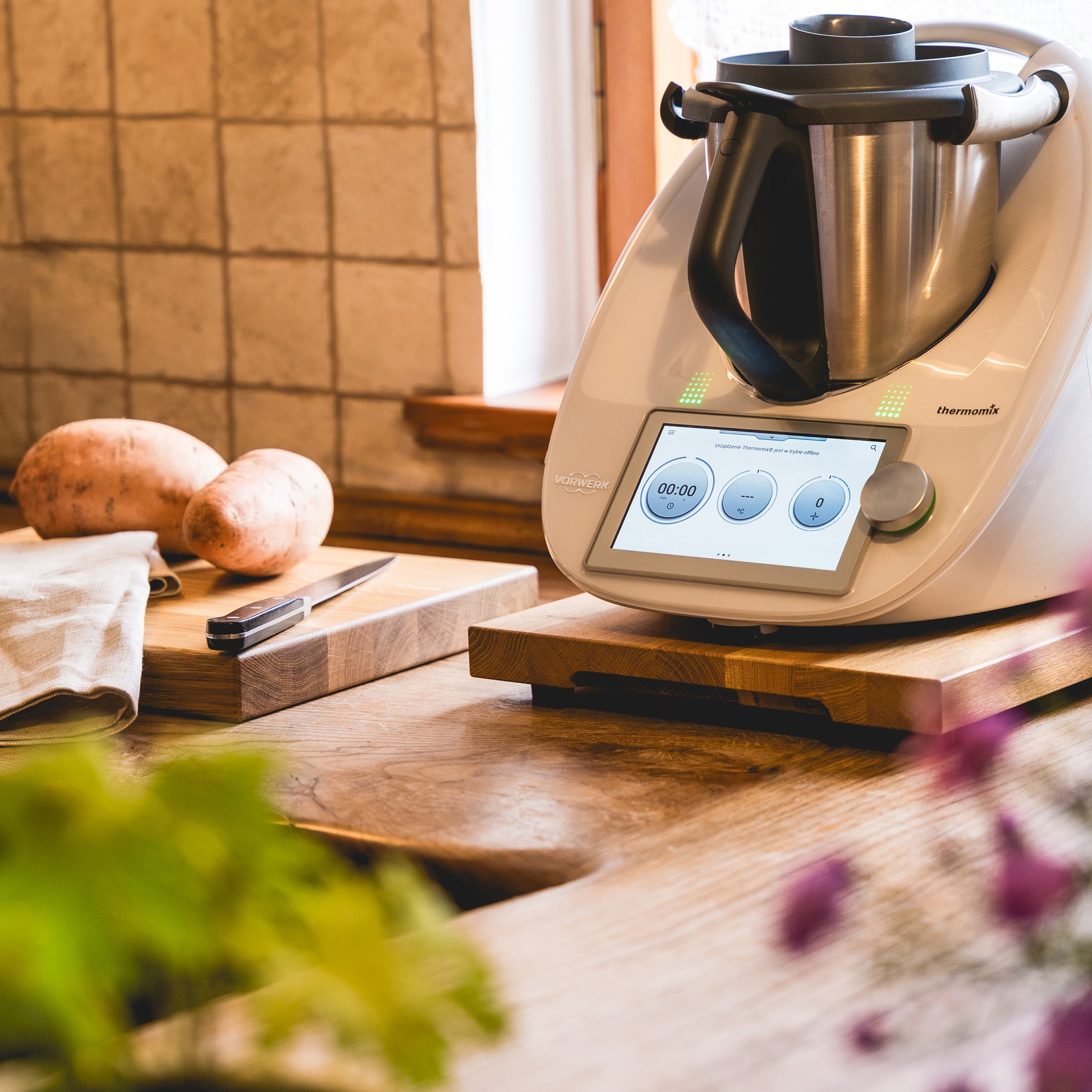 Podstawka pod Thermomix sprawia, że praca z urządzeniem jest płynna i wygodna. Stabilna podstawka pozwala przesuwać Thermomix bez wysiłku, chroni blat przed drganiami i jednocześnie pięknie komponuje się z każdym wnętrzem. To detal, który nadaje gotowaniu wielki komfort.