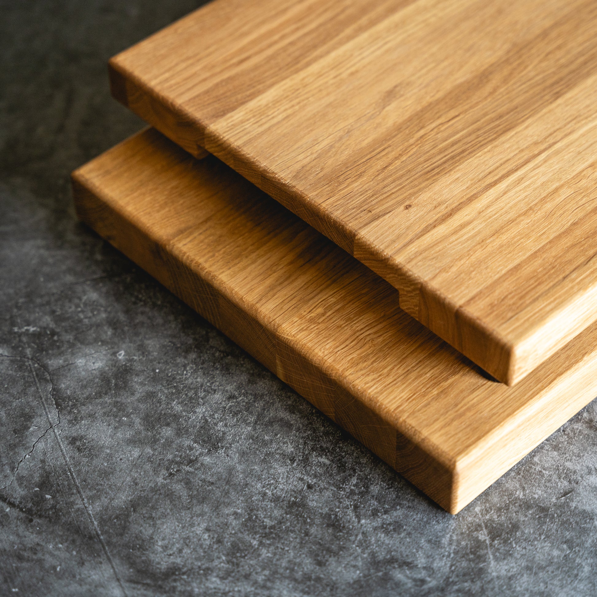 Deska do krojenia z możliwością konfiguracji, zachwyca wyraźnym usłojeniem i masywną konstrukcją, która nadaje kuchni ciepła i elegancji. To nie jest deska na jeden sezon – to element, który zostaje z Tobą na lata, a z czasem staje się częścią codziennych rytuałów w kuchni.
