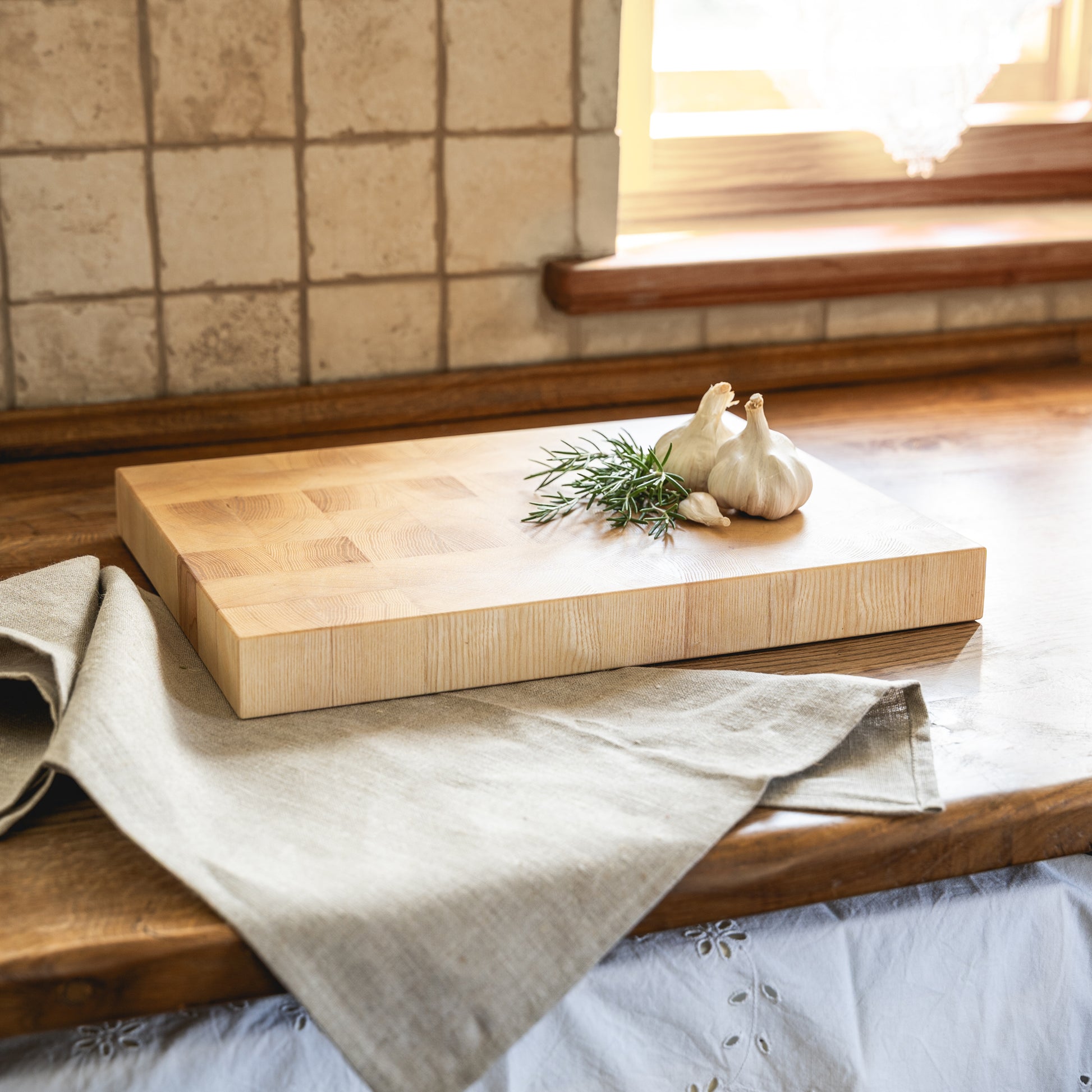 Jasna i bardzo wyrazista deska do krojenia z jesionu sztorcowego - przyciąga wzrok i zachwyca wyjątkową trwałością.